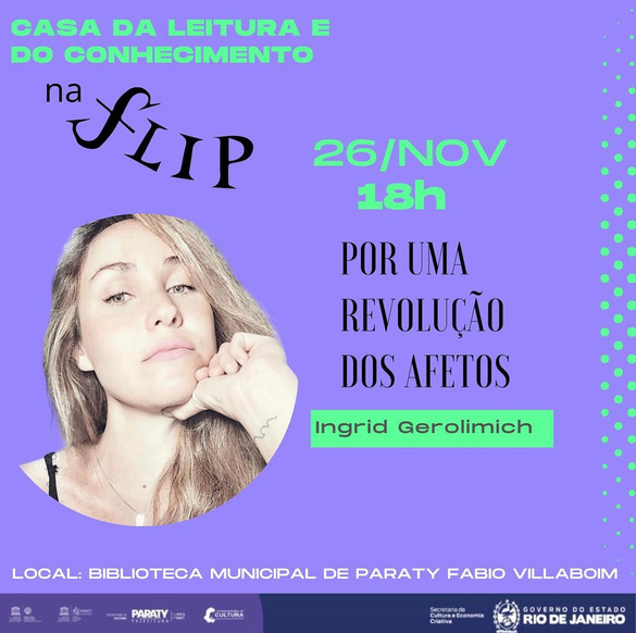 Palestrante na FLIP 2022, na Casa Oficial da Secretaria Estadual de Cultura do RJ, sobre o tema do seu curta-metragem “Revolução dos Afetos”, que fala sobre a solidão na contemporaneidade.